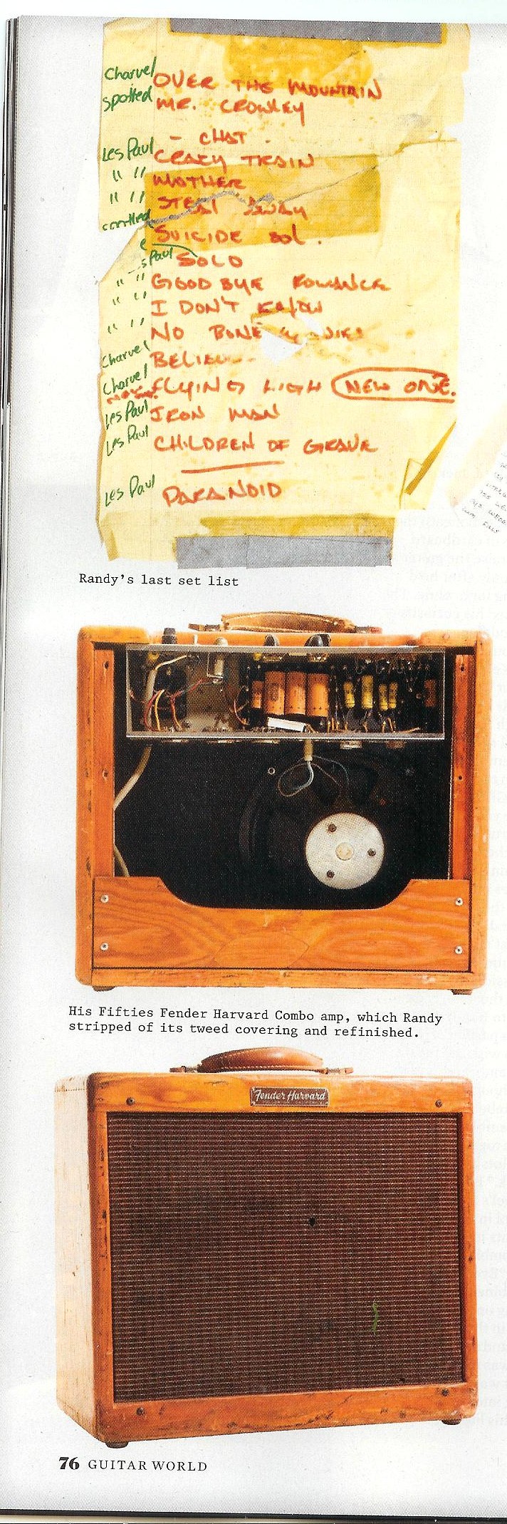 This was covered when the issue came out. That is not Randy's black jackson. The guitar she is holding is the jackson that Grover gave her. It is the first production model of the RR model, and actualy the first production Jackson guitar with the serial number 00001. There are subtle differences between the two, most notibaly the black plastic pickup rings, where as Randy had gold/brass ones. There are more differences, but I don't want to geek out here. Long story short, Randy never played the guitar Delores is holding. Hope that helps.