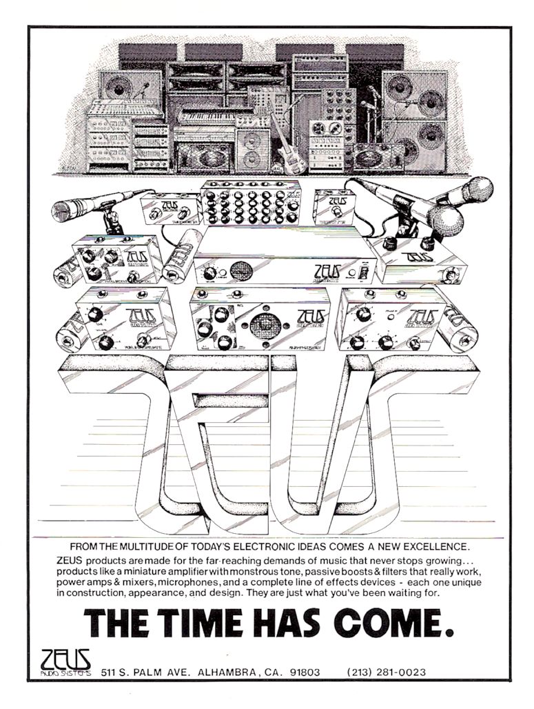 Thanks for posting that advert, that's cool. I have the Zeus 8401 like Randys, it sounds pretty good for a little practice amp that is portable and runs on batteries. It can't really compare to a real amp or a Marshall, but yet I can hear what people mean though when others say it has that Marshall flavor to it. It's certainly not bad for a 2 inch speaker. It's kinda like a PigNose, but tone for Metal instead of Blues, haha. It's real cool to see that advertisement, it's a trip how this seemed to be a hot popular little thing back then, but now it's disappeared into extreme obscurity.