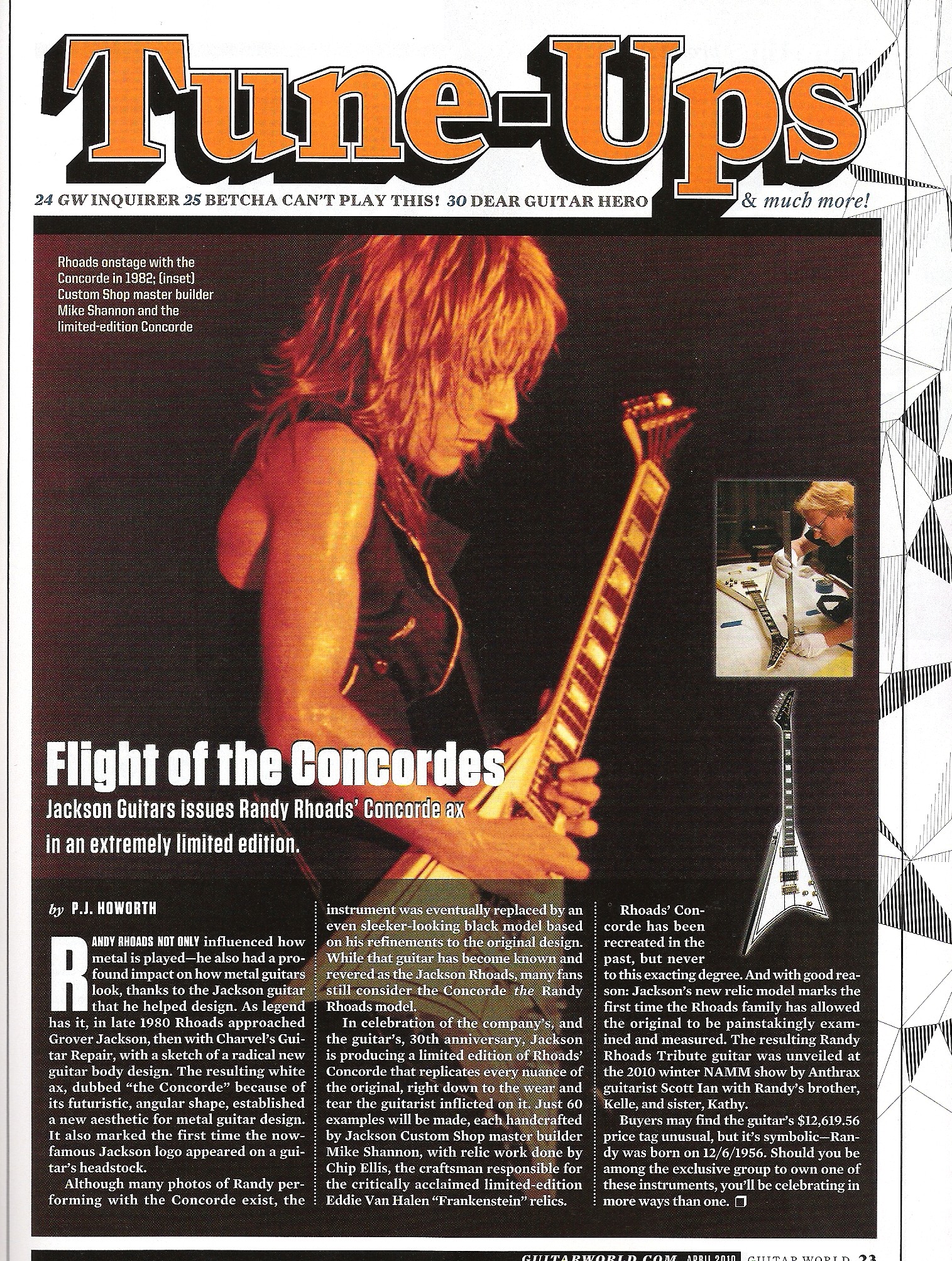 While the Concorde guitar is modeled after the airplane Kelle Rhoads has said in an interview that you have to look at the guitar at a certain angle (2 o'clock) in order to really see the similarity. For the life of me I can't seem to locate the interview/lecture where he said it word for word. I thought it was in the lecture he delivered at a private high school a few months ago but still have not found it. I'll keep looking for it...
