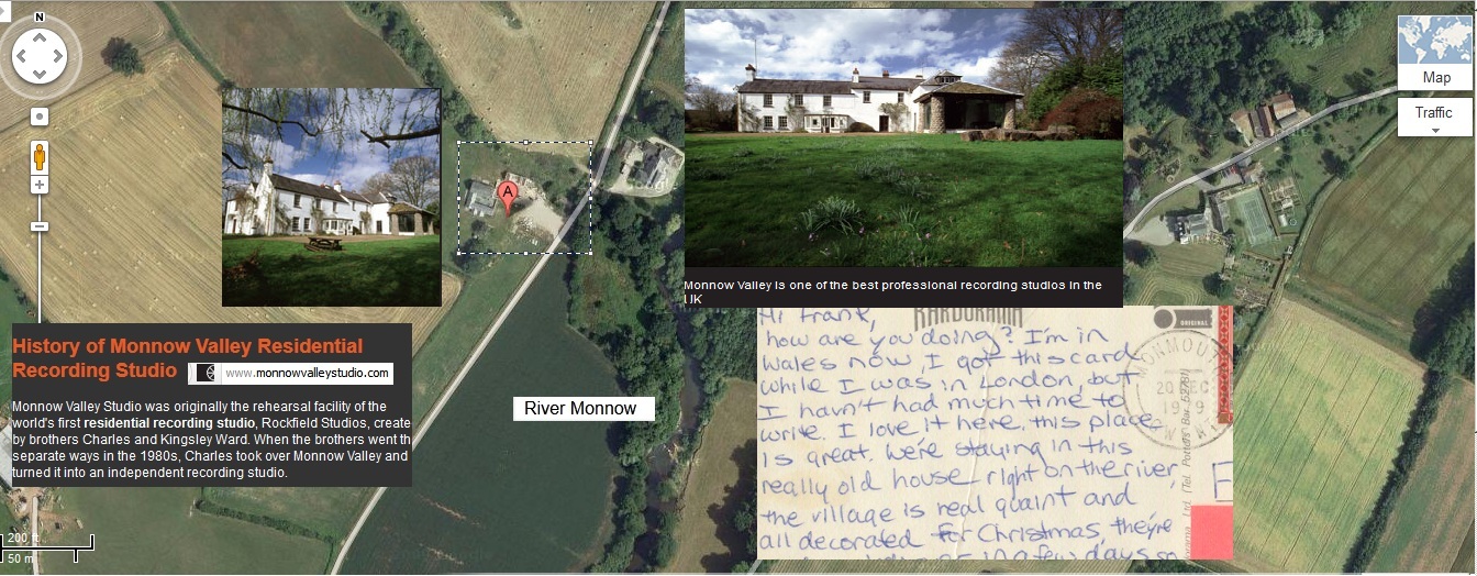 If you look on the map and type the address of Monnow Valley in and then Rockfield studios you can see how close they were , Monnow Valley is the old house on the river Randy was talking about