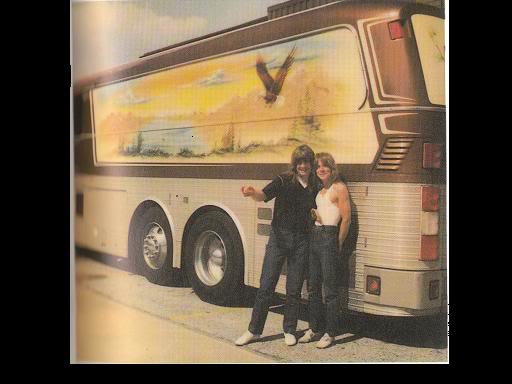 Check this link (with video) out from Rolling Stone. It gives you a good idea of what the tour bus would have been like. Of course, this is Willie Nelson's old bus, but it's interesting to see the inside of one of these busses in detail: