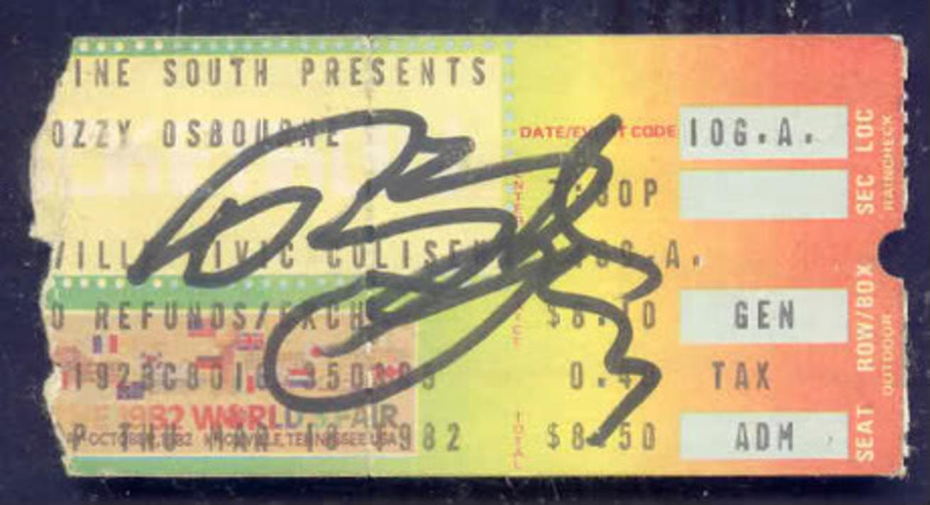 autographed ticket from last show rhoads n ozzy