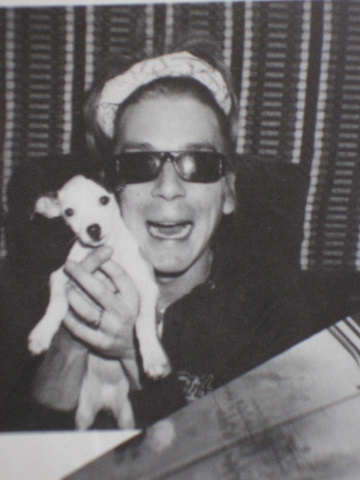 Here's the one from the back of Diary of a Madman book which GUITARIDOL mentioned, not sure the name of the dog though, is this Bonehead.