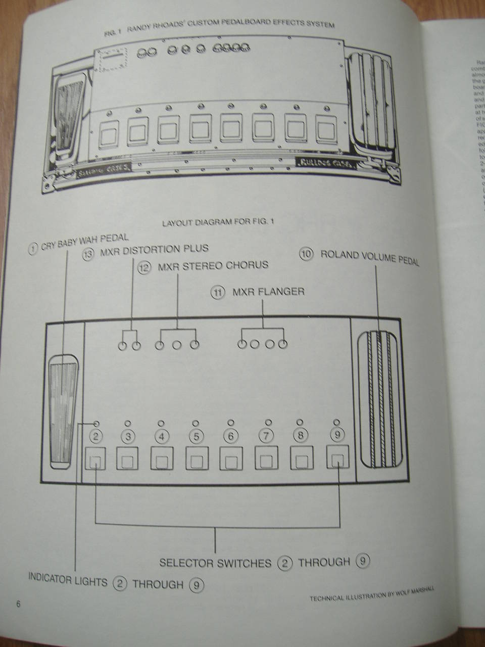 here have randys favorite pic, you can clearly see his guitar going into his volumepedal on his pedalboard.