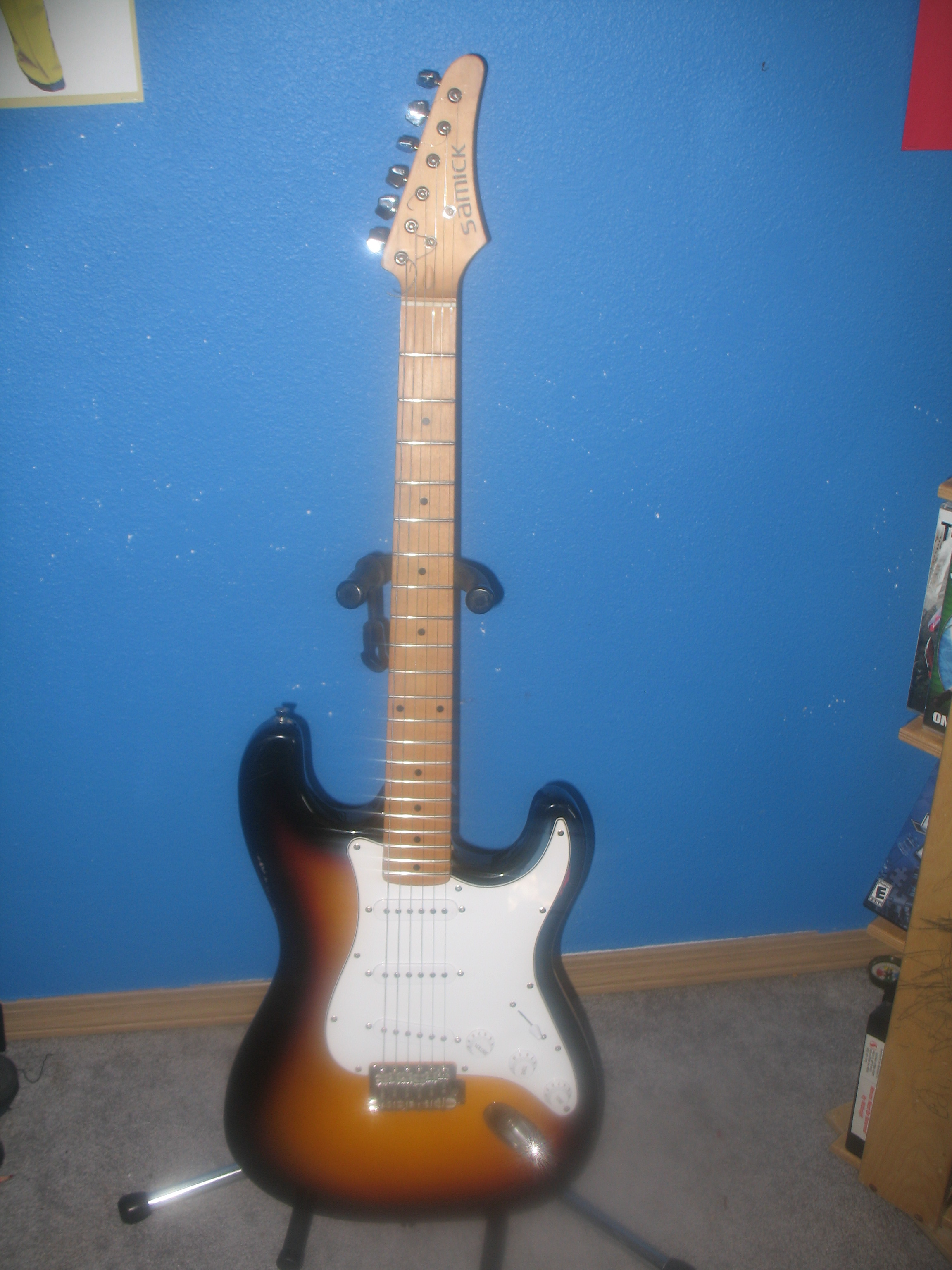 The pawnshop guy felt bad and threw in a $50 frankenstrat... after a bit of adjusting, it plays and sounds great. It's part Samick and part Fender Strat. I was shocked that is sounded to good!