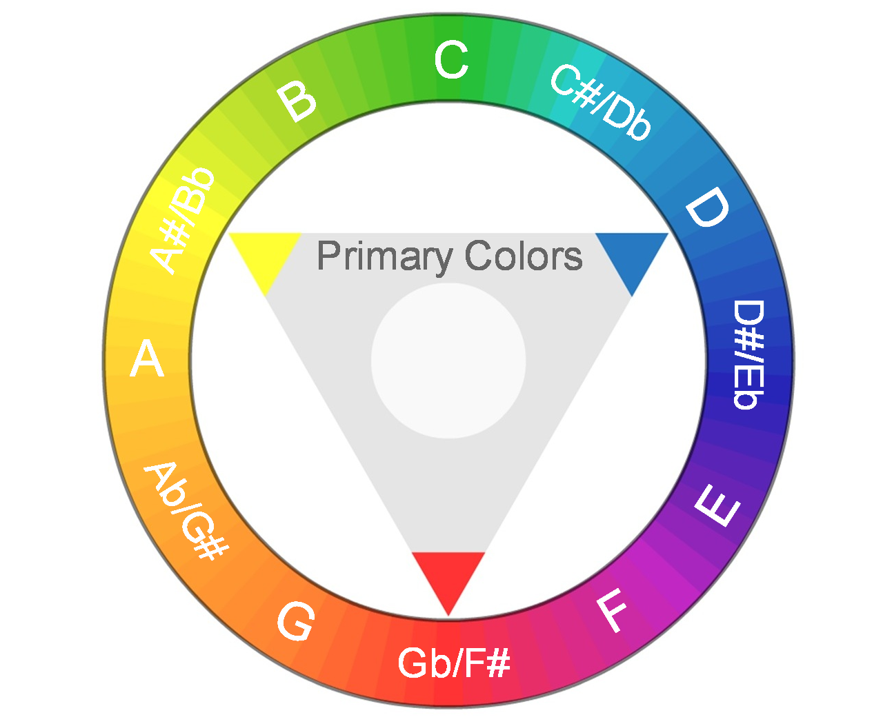 That's right it's in color. The problem is that this connection is lost by the time you get your first music book. All we ever see by the age of 10 is black and white notation. This is by far the worst way to identify different degrees of pitch. No wonder we struggle to play music. If playing guitar is not hard enough we also have to overcome a low-grade application of human emotion to the wriiten musical note. Did you know our emotions can be "assigned" a certain color?