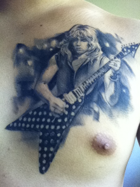 In terms of Tatoo's yes its my first. Yeh I thought about it long and hard. I did think about having the picture where Ozzy is lifting Randy while playing but i felt that this was far more likely to go wrong? Maybe its just me.