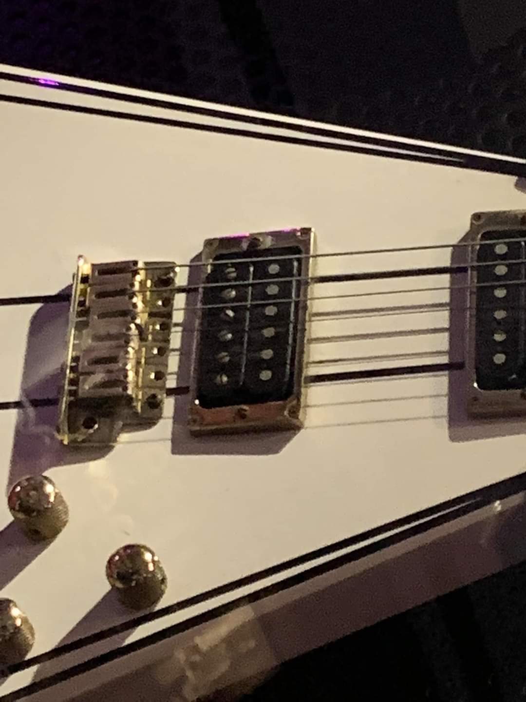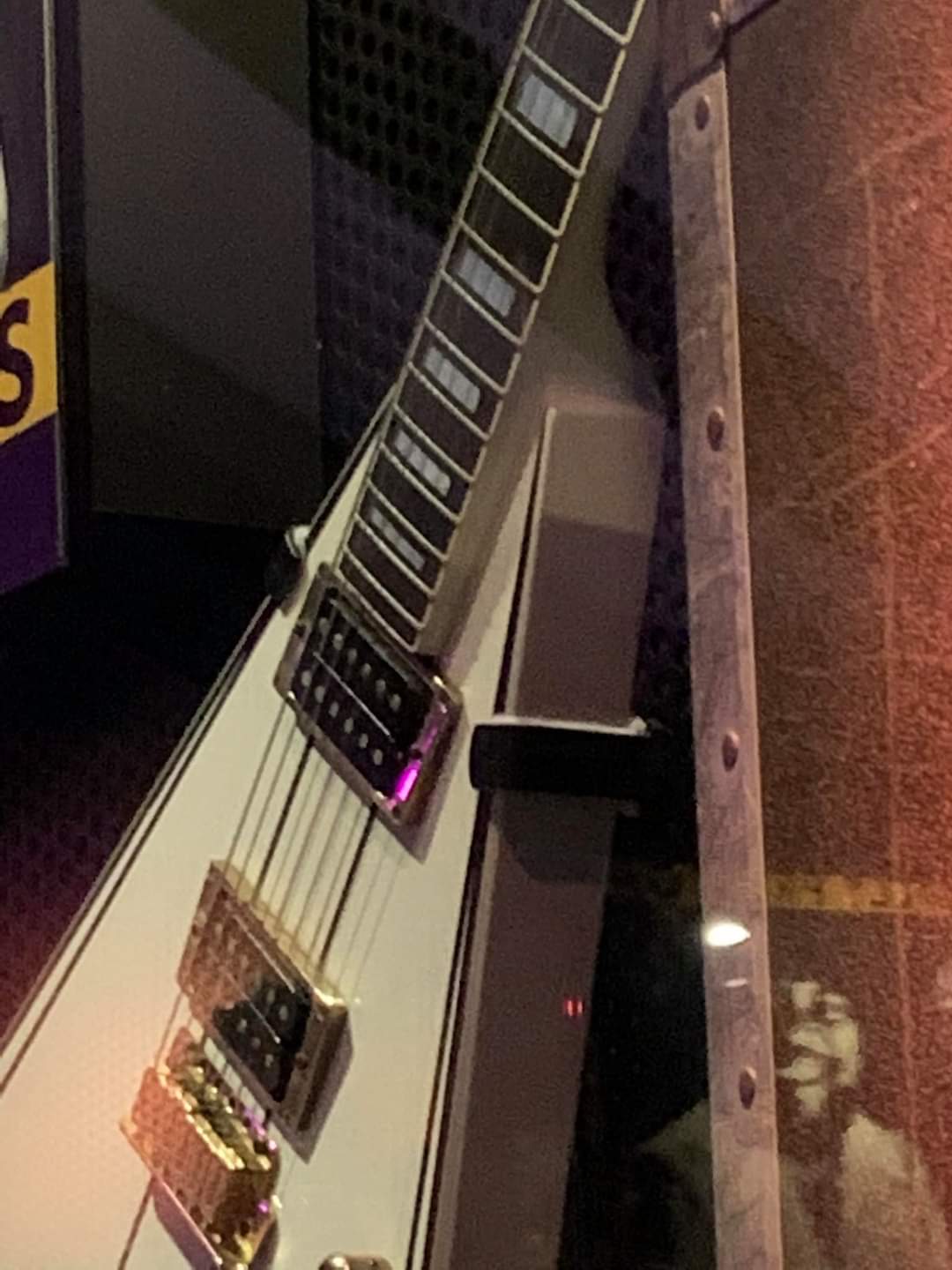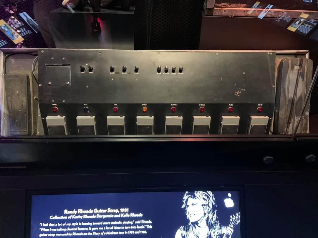 Some photos from the Rock n Roll Hall of Fame. Randy's pedal board, Concord Jackson V and guitar case, his stage worn shoes & Guitar studded strap.