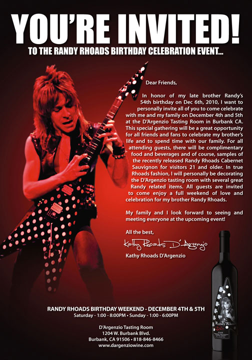 Can't wait for this event. I'm bringing a handful of my Randy photos to display at the event. Thanks to the Rhoads family for inviting me to be a part of this great event. Hope to see you all there.