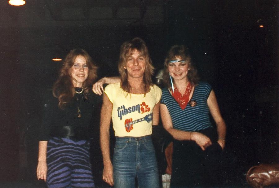 I remember seeing this in a magazine in 1983/84...Hit Parader I think. One of the girls sent it in and I remember she said that it was taken about 11:30pm the night before the accident, as Randy was getting on the bus. Other than what photos Don took the morning of, I would say this is the last, made public. The photo of Randy & Rachel posted below was from at least months before the accident, as I saw this photo before the accident. Plus, Randy does not have the Gibson shirt on. Ozzy said that he found a piece of Randy's Gibson shirt in the garage the day after the accident & Randy was wearing that shirt with the girls in this photo. Just saying.
