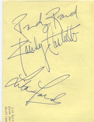 Very interesting observations Oth, thanks for that! The only thing that had thrown me off was how the 'y' in Randy went straight down instead of looping to the left, but I've seen several verified autographs that did do this. One thing's for sure, it's a pretty good fake if it is. They're usually quite brutal.
