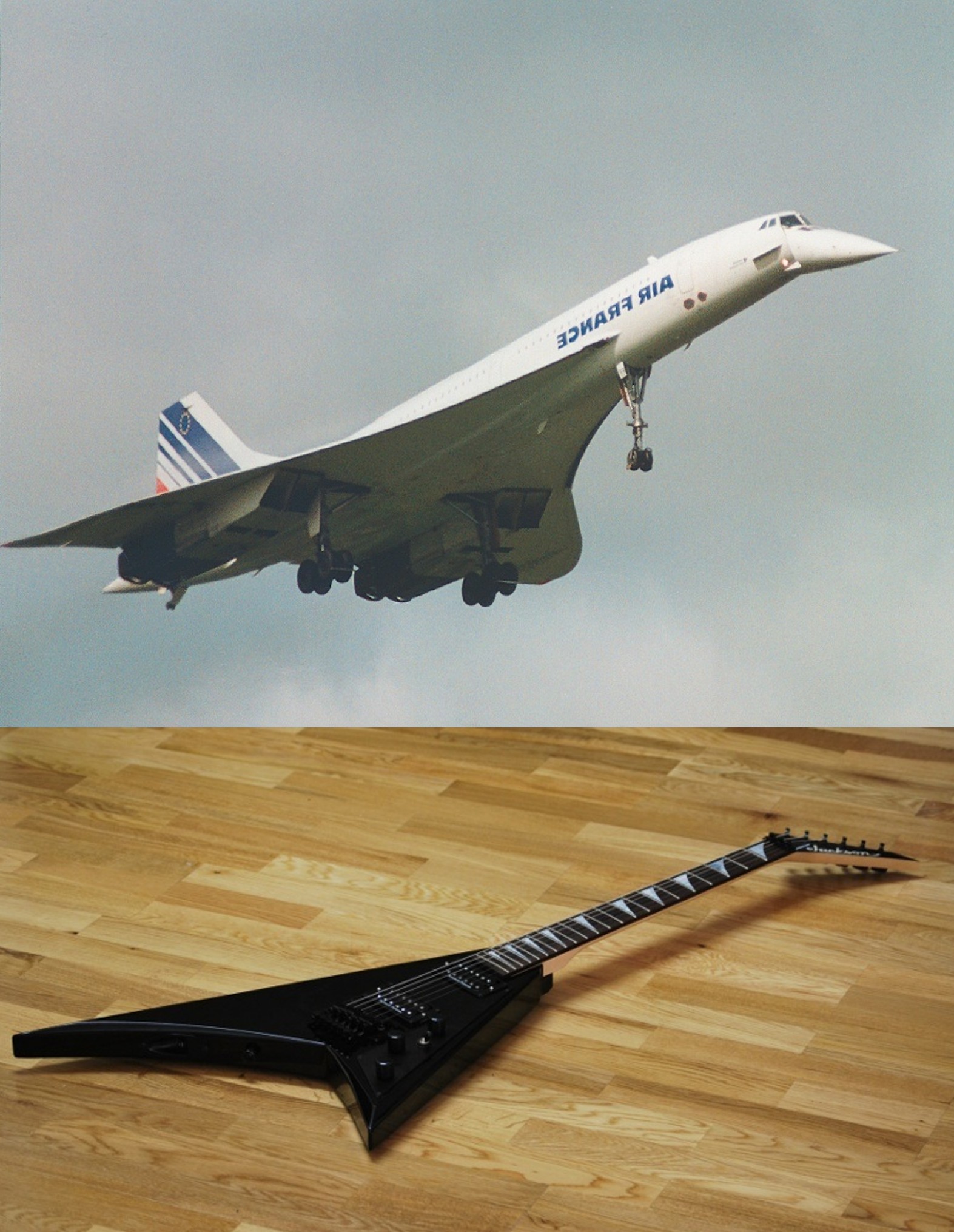 The profile of the Concorde jet is similar to the guitar in it's entirety.