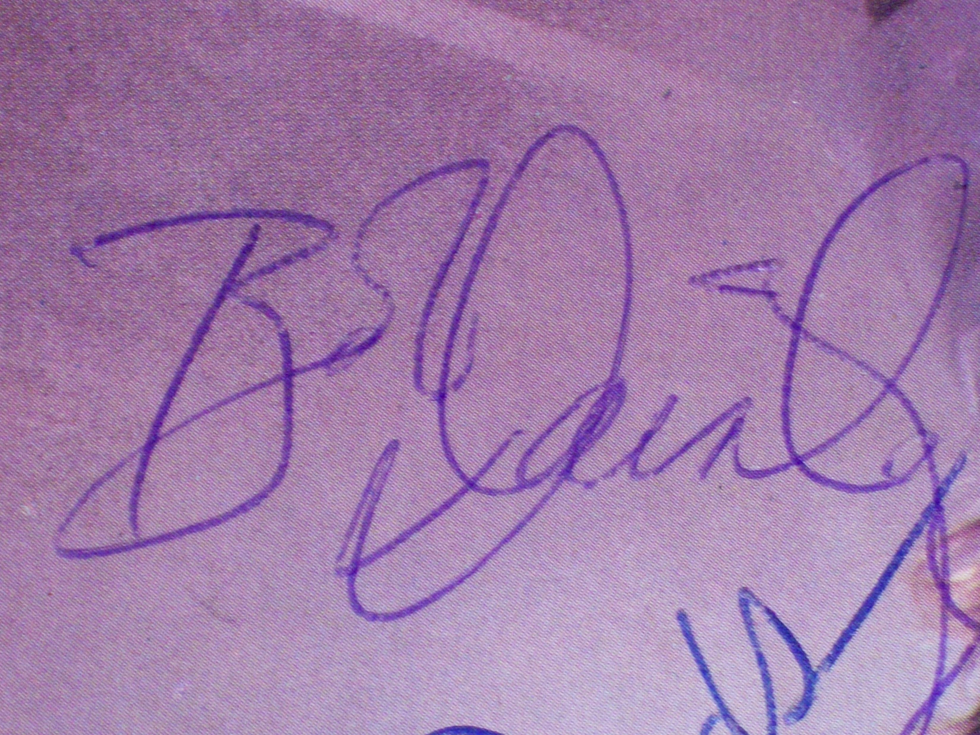 Rhys did you bid on this one ? The price jumped up at the last minute, but i'm happy with the price i got it for. I've seen Randy's signature change so much with his R's having sharp pointy < darts coming out of them i've seen them like balloon shaped, rounded and straight forward R's that are very basic. I know the signature is missing a couple of letters as the pen wasn't writing very good. But the imprint on the 'andy' is very much what i recognise as being the same. The seller did say he got it back in the mid 80's and the Ozzy signature is from them. It looks like how Ozzy's signs his signature today.