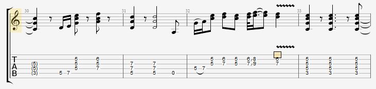 Another thing that was an 'epiphany' is the lick during the 2nd chorus (at the same point). I always had difficulty remembering the fingering for that and would slow down there. Then I 'saw' it as descending in D minor and it clicked. I was actually playing a 3-note per string F major scale prior to playing Crowley, so when I go to that lick it sounded familiar... D minor is the relative minor to F major, so I could see the context.